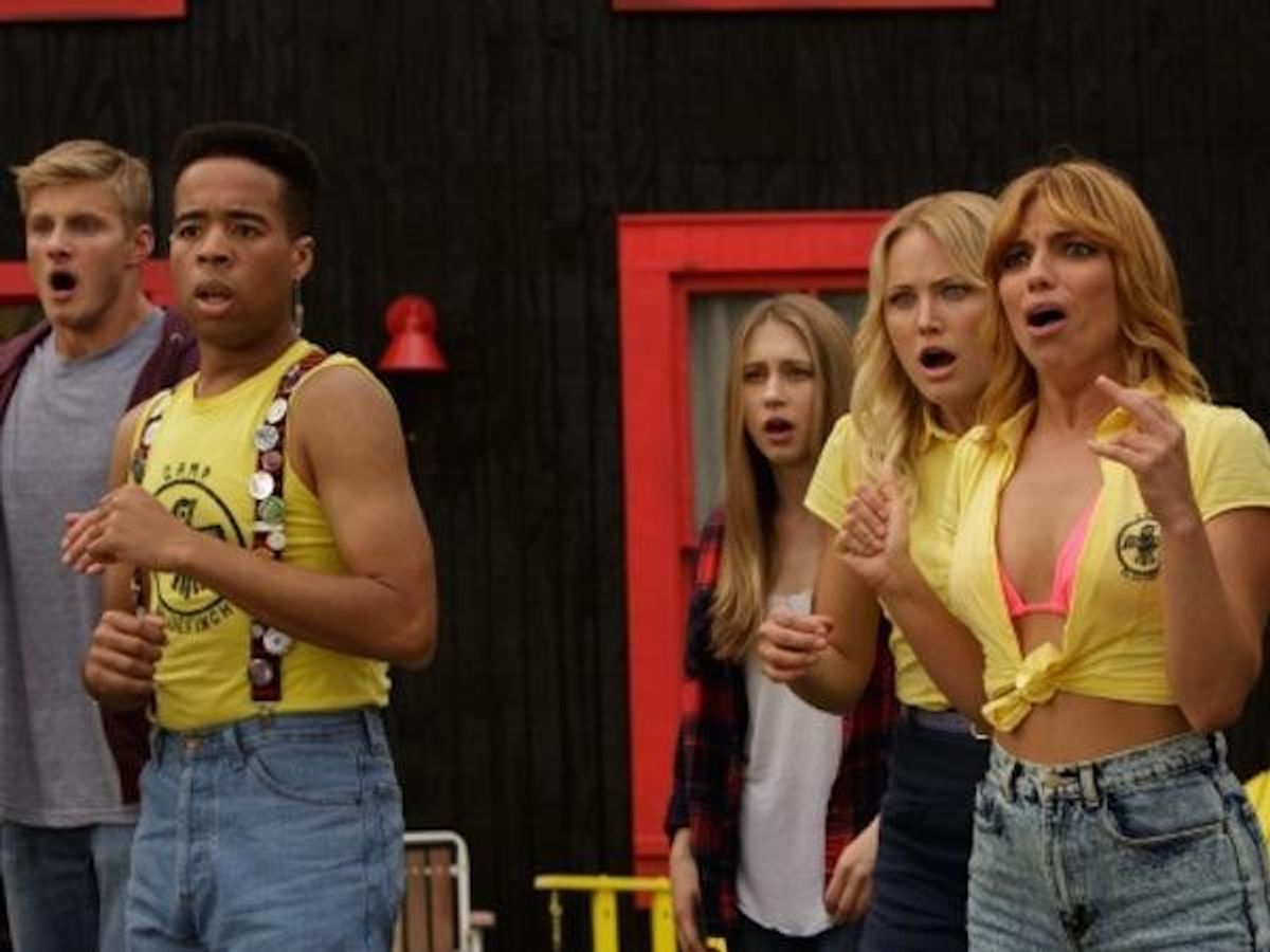 The Final Girls hit theaters this weekend with rave reviews. A parody of the '80s slasher genre, the movie pokes fun at horror cliches while telling an emotional story with heart. Max (Taissa Farmiga) watched her struggling actress of a mother, Amanda (Malin Akerman) die in a car crash. Three years later, Max and four friends attend an anniversary screening of Camp Bloodbath, a Jason-esque horror flick starring Max's late mother. Somehow, the teenagers end up in the movie, where Max has the chance to save a version of her mother.