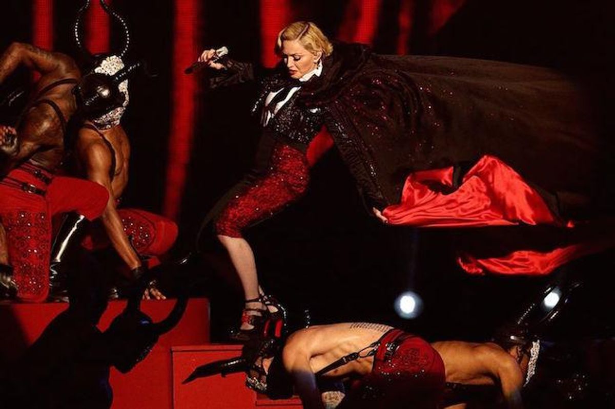 Madonna was performing "Living for Love" at the 2015 Brit Awards when she took an epic fall off stage. Mid-disrobing, the singer experienced a wardrobe malfunction (beware of capes, always!) and was pulled down a staircase. Ouch.