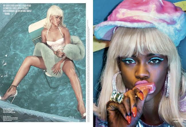 Photographed by Steven Klein, Rihanna appears in a candy-colored editorial -- her idea, apparently. In the cover story, the singer opens up about her new album, her creative process, and her recent single with Paul McCartney and Kanye West, "FourFiveSeconds."