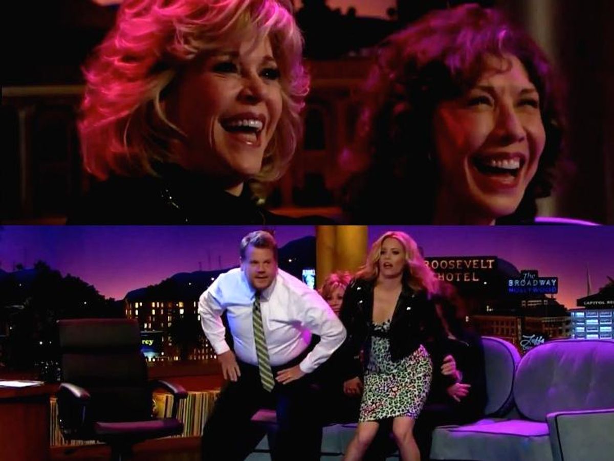 Grace and Frankie's Jane Fonda and Lily Tomlin sat down with The Late Late Show's James Corden and guest Elizabeth Banks. Rumor has it, said Corden, that Jane throws some legendary house parties where the only rule is: DANCE.