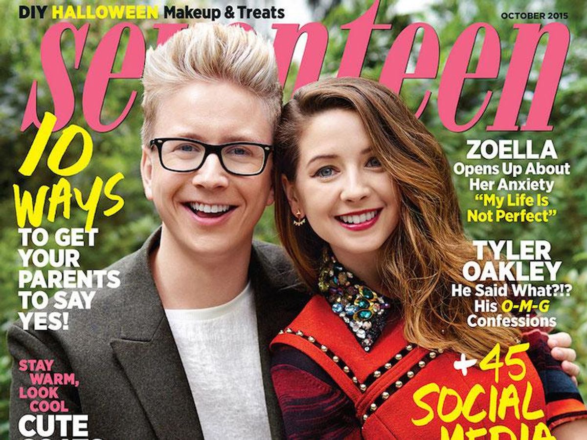 Gay YouTube sensation Tyler Oakley joins fellow YouTuber Zoella on the cover of the September issue of Seventeen magazine. With 7.5 and 3.5 million subscribers, respectively, the duo breathe with a relaxed ease on camera, yet both admit to having very real insecurities.