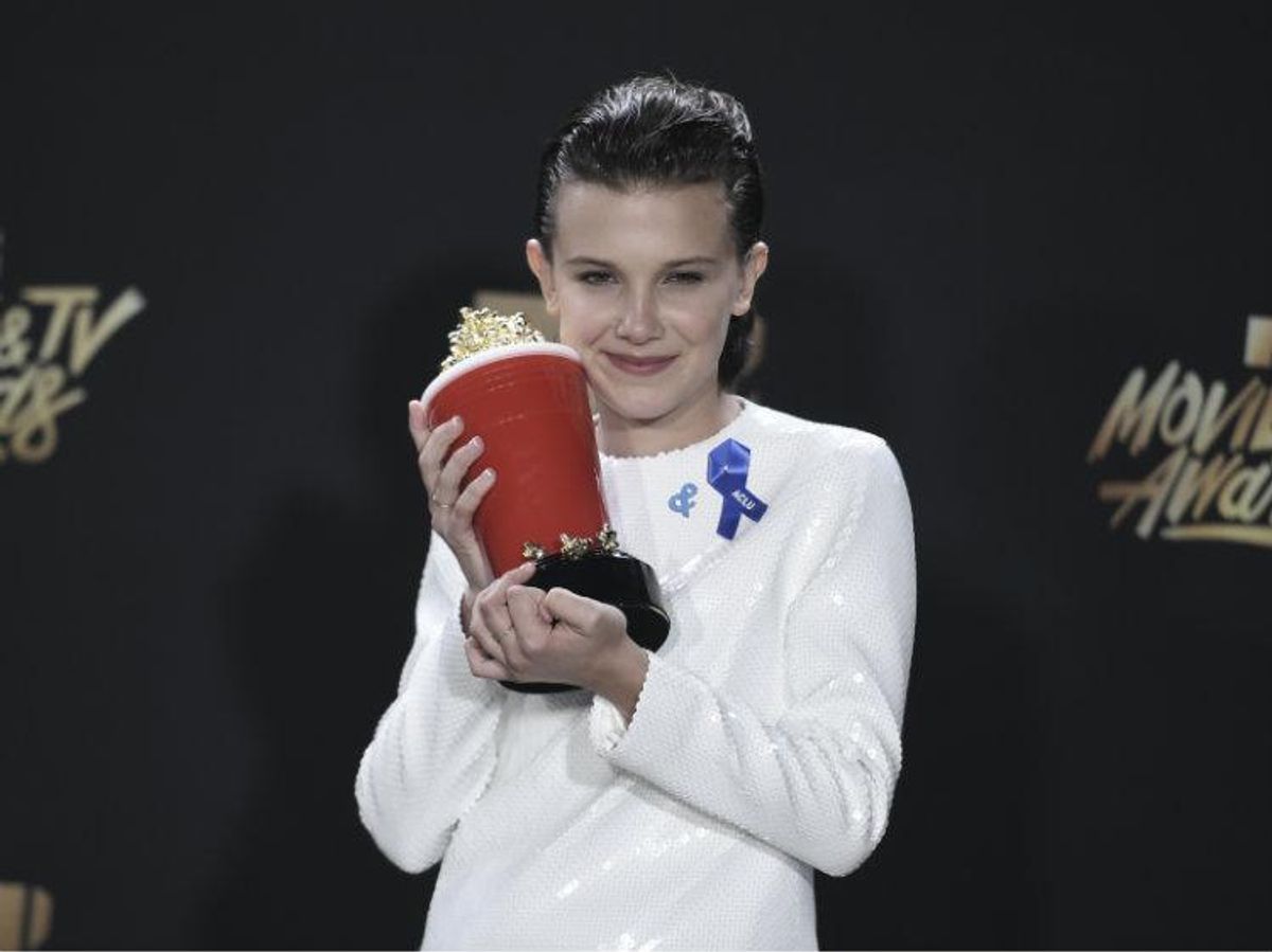 At last night's MTV Movie and TV Awards, not only did Millie Bobby Brown win the award for best actor in a series for her work as the telekinetic Eleven on Stranger Things, she used her acceptance appearance to support social causes.