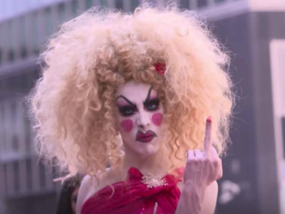 This doll isn't here to be friends though. She came to send Tatianna home and win the crown. You may remember the pageant doll's entree into society through a season five mini challenge in which Alaska Thunderfuck said her catchphrase is, "You're not my real dad, and you never will be," and her hobbies included, "Riding dirty and being a straight up motherfucking dick pig."