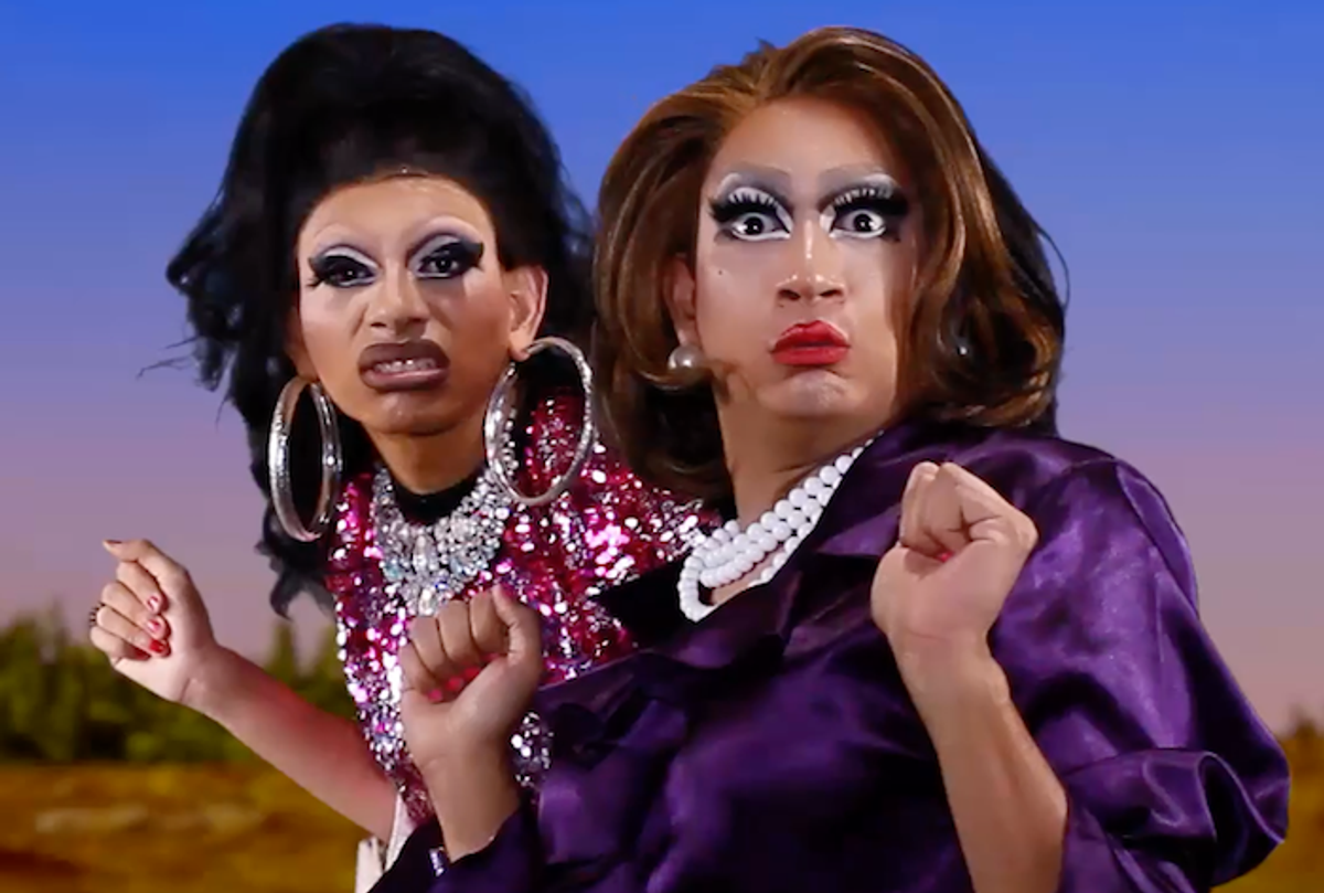 Besides their immaculate makeup and comedic banter, the two have an arresting stage presence that's heavily influenced by being deaf. "It enhances our visual," they said. "Facial and body expression is part of American Sign Language, and it helps us to paint a certain look that goes with [our] facial expressions." Their grand gestures and over-the-top facial expressions lend itself perfectly to drag, making for wildly hilarious videos that simultaneously spotlight intersectional issues.