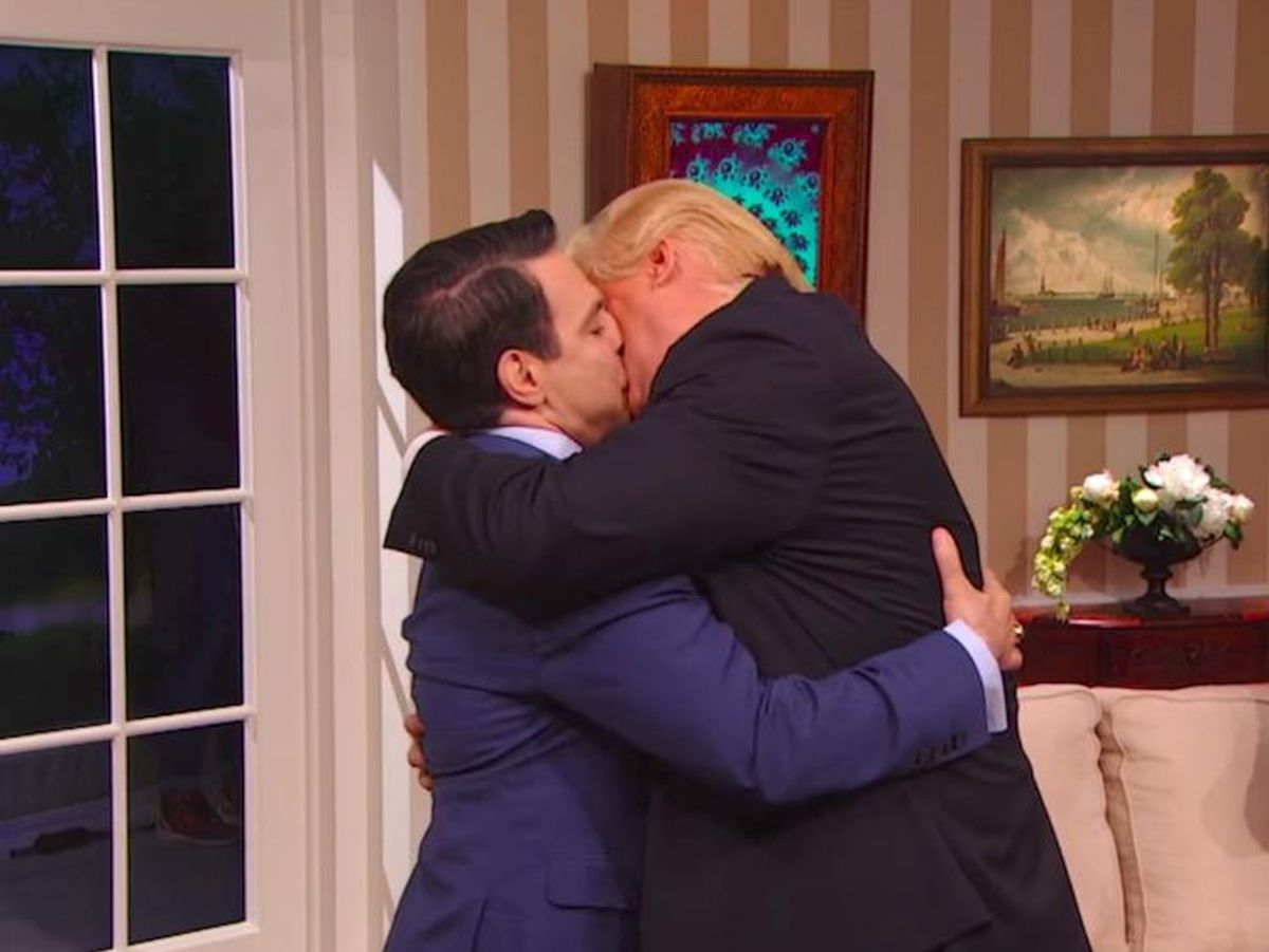 This gay-baiting, homophobic trope that Anthony Atamanuik's television show lazily fell back on to get some laughs is nothing new. On SNL, Melissa McCarthy's Sean Spicer locked lips with Trump and, in an episode from last year, Trump kissed Vladmir Putin. It was the latter kiss between Trump and Putin that reflected an overarching and long-running "joke" that Putin and Trump are gay for each other.