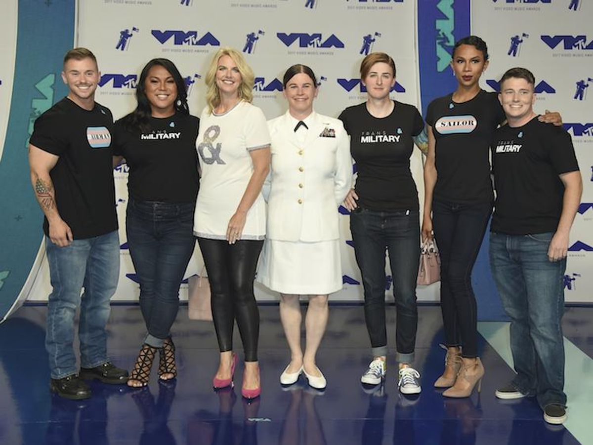 To raise awareness of Trump's discriminatory and unlawful ban of trans people in the military, MTV President Chris McCarthy invited trans members of the armed forces to walk the VMAs red carpet last night. Six trans servicemen and women joined in the awards show, accompanied on the carpet by GLAAD President Sarah Kate Ellis.