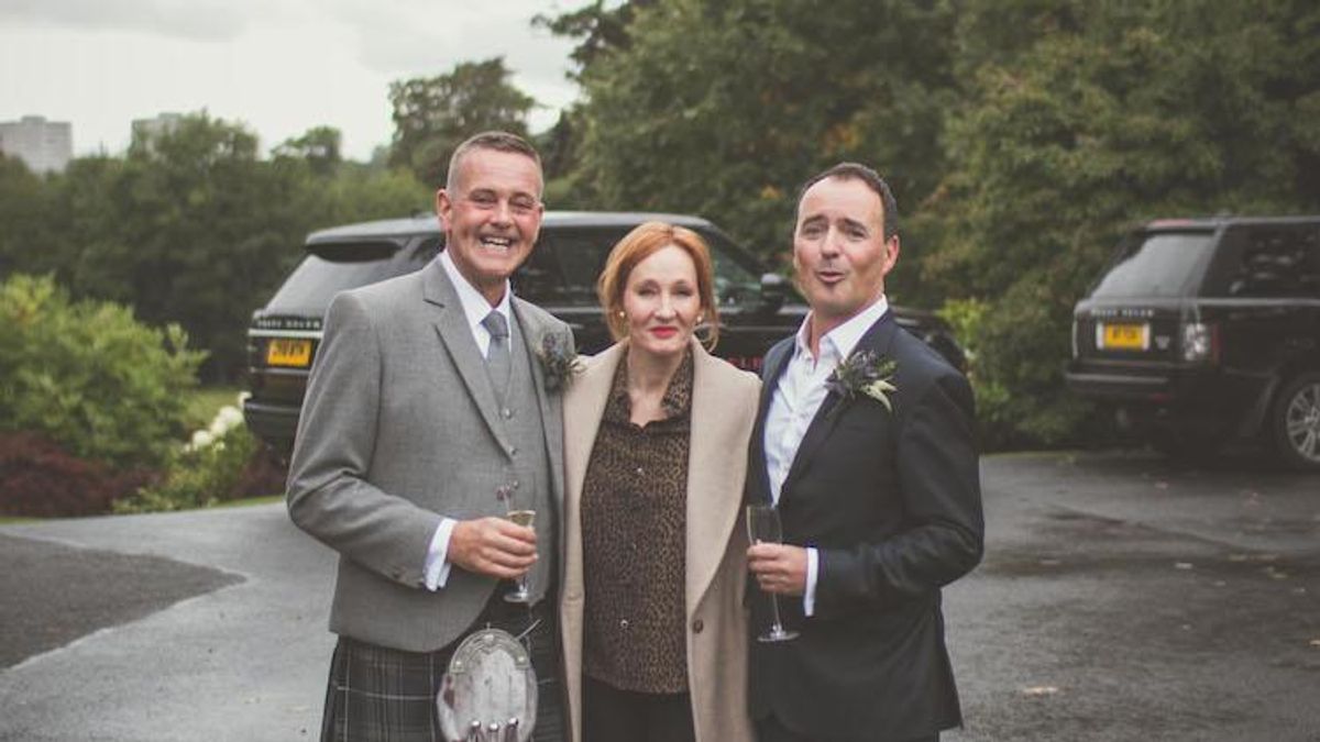 Now, the author is leaving her magical impression on holy matrimonies. Rowling recently popped up at a same-sex wedding between Nick and John at Prestonfield House in Edinburgh. As the couple was having their photos taken outside, the writer walked by after apparently having lunch at the venue.