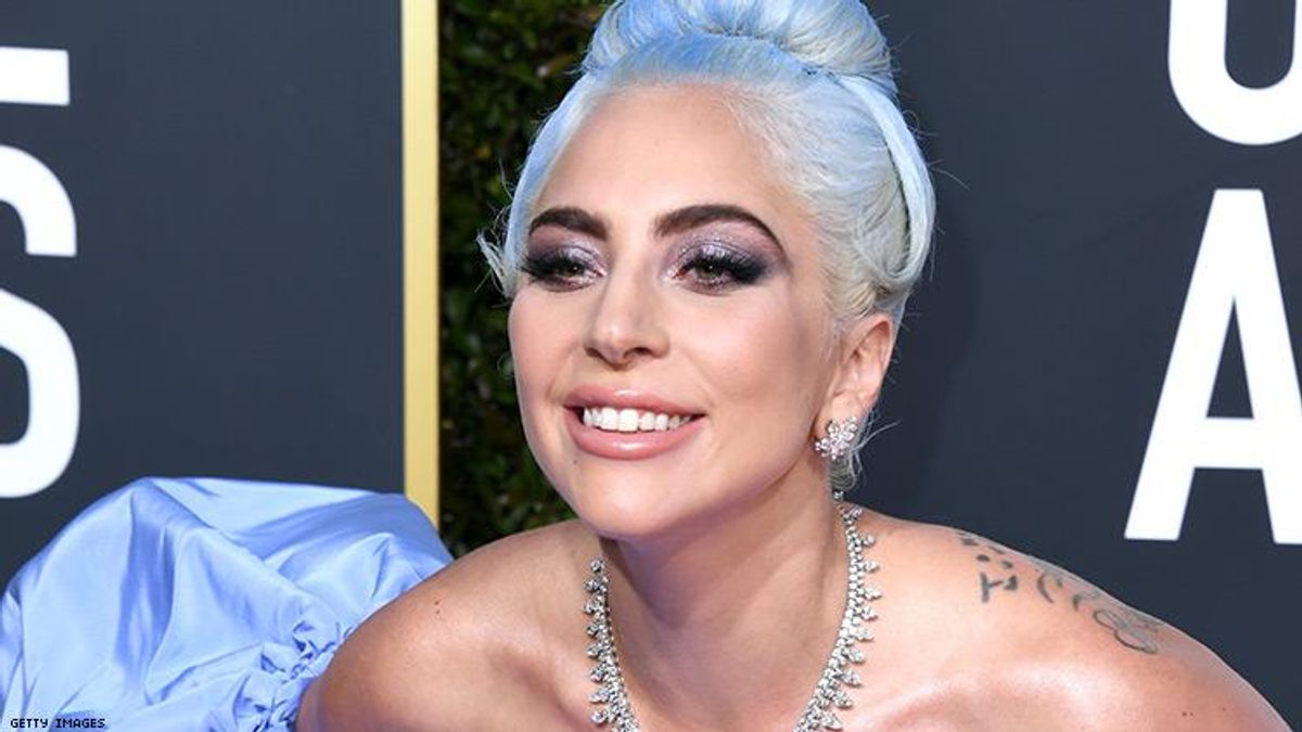 If her role as Ally took her orange, then it seems like 2019 red carpet season is taking her blue. Lady Gaga arrived on the red carpet at the 76th Golden Globe Awards Sunday night to take home her almost-guaranteed award for Best Actress with her hair dyed blue. And why, beyond Gaga's genuine and well-documented flair for switching up her aesthetic? Well because her gown (Valentino, of course), with it's puffy sleeves and train trailing behind her, was the same hue.