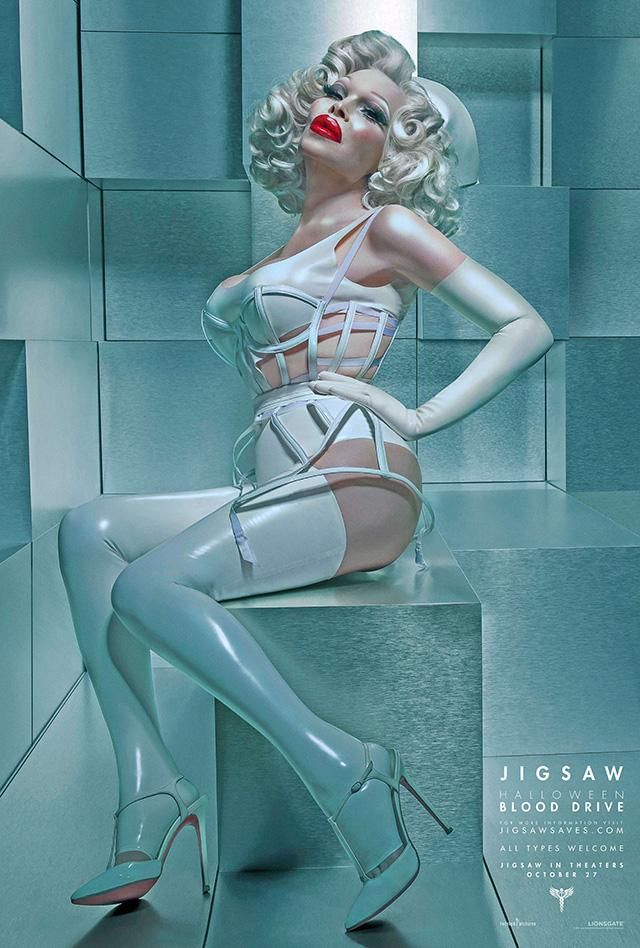 The campaign for Saw's eighth installment, Jigsaw, takes a stand against strict FDA regulations preventing LGBTQ people from donating blood. Lionsgate's newly launched "All Types Welcome" campaign features lesbian, gay, bisexual and transgender stars dressed as nurses, encouraging fans to give blood. Model Shaun Ross and trans icon Amanda Lepore are notably featured, representing a population that must forgo same-sex sexual interactions for at least a year before legally donating blood. For more information, visit jigsawsaves.com.