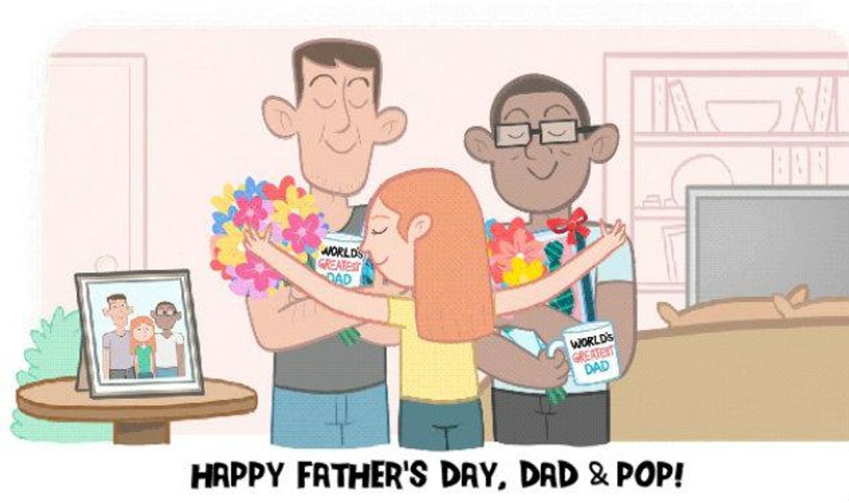 For the first time ever, Hallmark is offering a same-dad Father's Day e-card. The GIF was released along with a series of four others titled "Lover is Wherever," by transgender artist Kylie Wu.