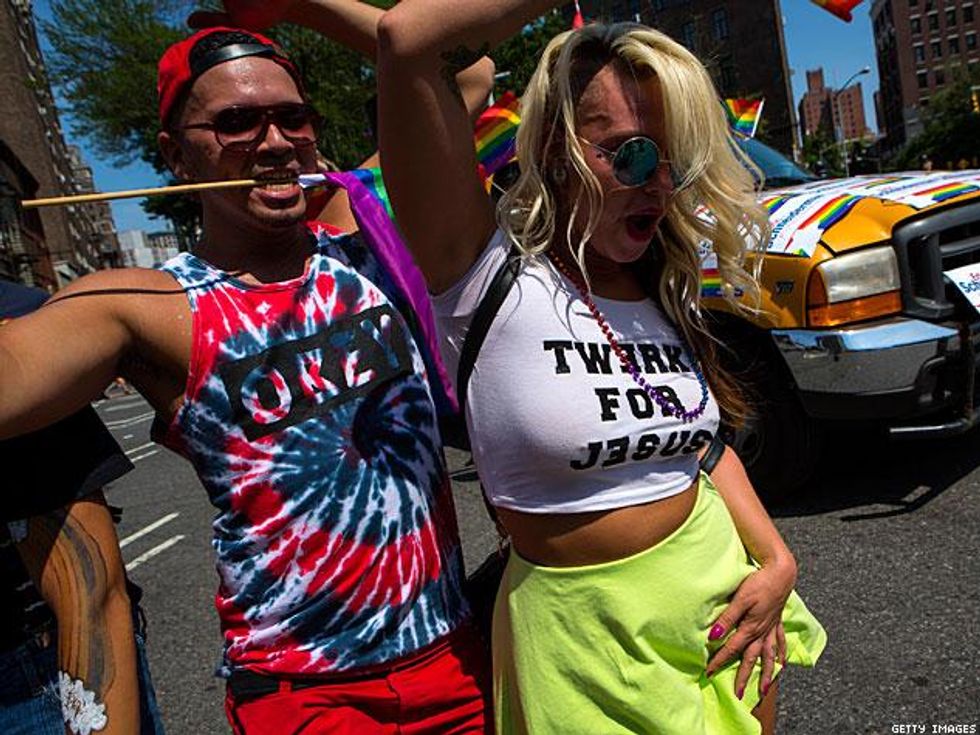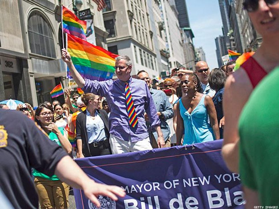 Thousands of marchers followed the parade route from 36th Street and Fifth Avenue to Greenwich and Christopher streets. It ended at the Stonewall Inn, where New York marchers commemorated the 45th anniversary of the 1969 riots credited with launching the modern LGBT rights movement. New York Gov. Andrew Cuomo attended along with grand marshals Laverne Cox, transgender actress and activist, actor Jonathan Groff and Rea Carey, executive director for the National Gay and Lesbian Task Force.