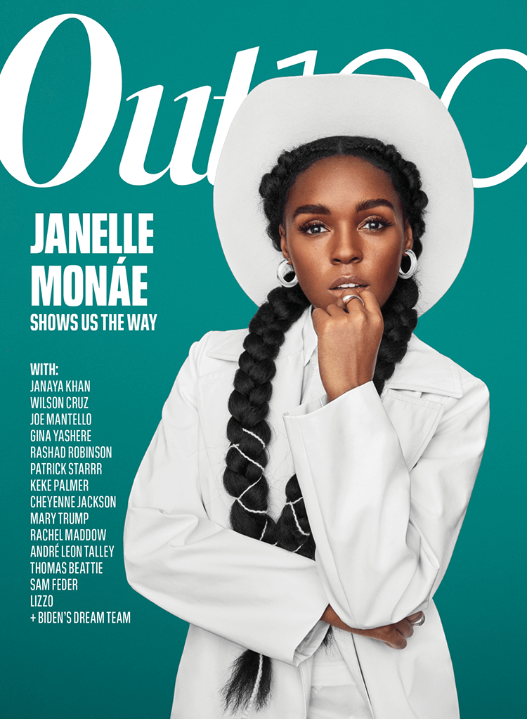Janelle Monae is one of four cover stories for 2020's Out100 issue, which is comprised of 100 of the most influential LGBTQ+ names in music, fashion, culture, advocacy, and more. More covers will be revealed as the week goes on. The full list will be released Thursday, November 19, 2020 and the issue is out on newsstands on December 1, 2020. The first-ever Out100 Virtual Honoree Induction Ceremony will be Saturday, November 21, 2020 at 8 p.m. EST. You can watch live on the Out100 Live landing page.