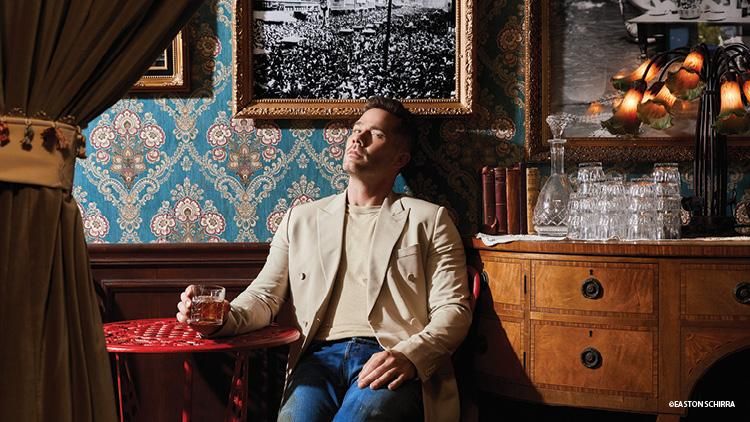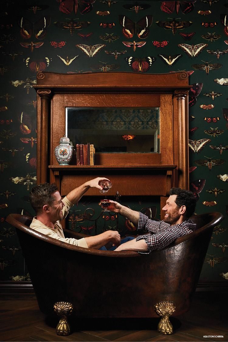 It was a Dior death match at Out's photo shoot of Bros stars Billy Eichner and Luke Macfarlane. On a recent Saturday afternoon, the actors arm-wrestled in designer plaid shirts before jumping into a freestanding copper tub in the middle of Bathtub Gin LA, a Prohibition-style speakeasy located in the middle of Tinseltown. Framed by butterfly wallpaper and a wall of booze, the pair then toasted glasses of brown stuff (which was, in fact, just iced coffee).