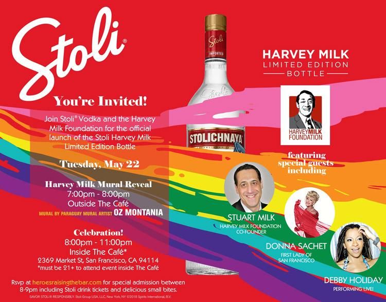Join Stoli Vodka and the Harvey Milk Foundation for the official launch of the Stoli Harvey Milk Limited Edition Bottle on Tuesday, May 22.