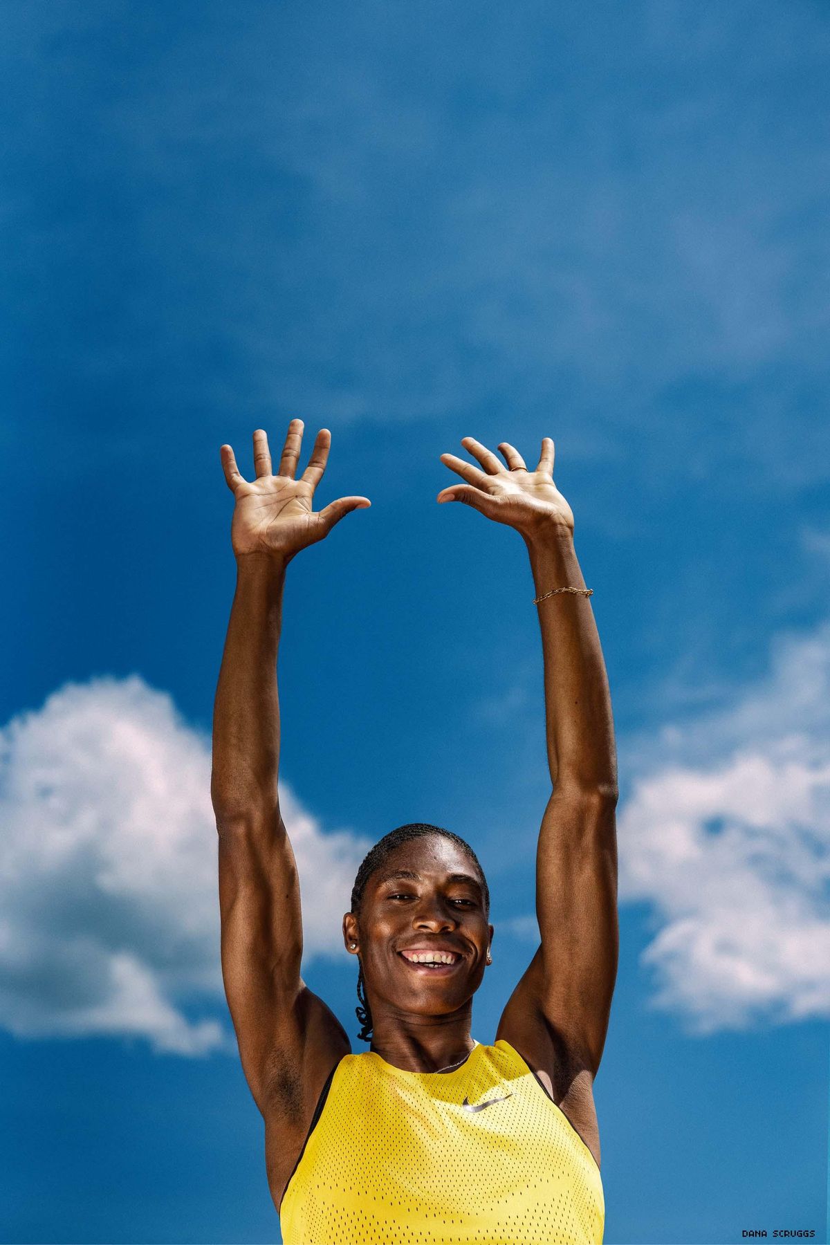 Caster Semenya raises a fist as her name is announced over the loudspeaker: The South African runner stands in lane eight on a track in Doha, Qatar, at a Diamond League competition held this past May. She looks pissed.