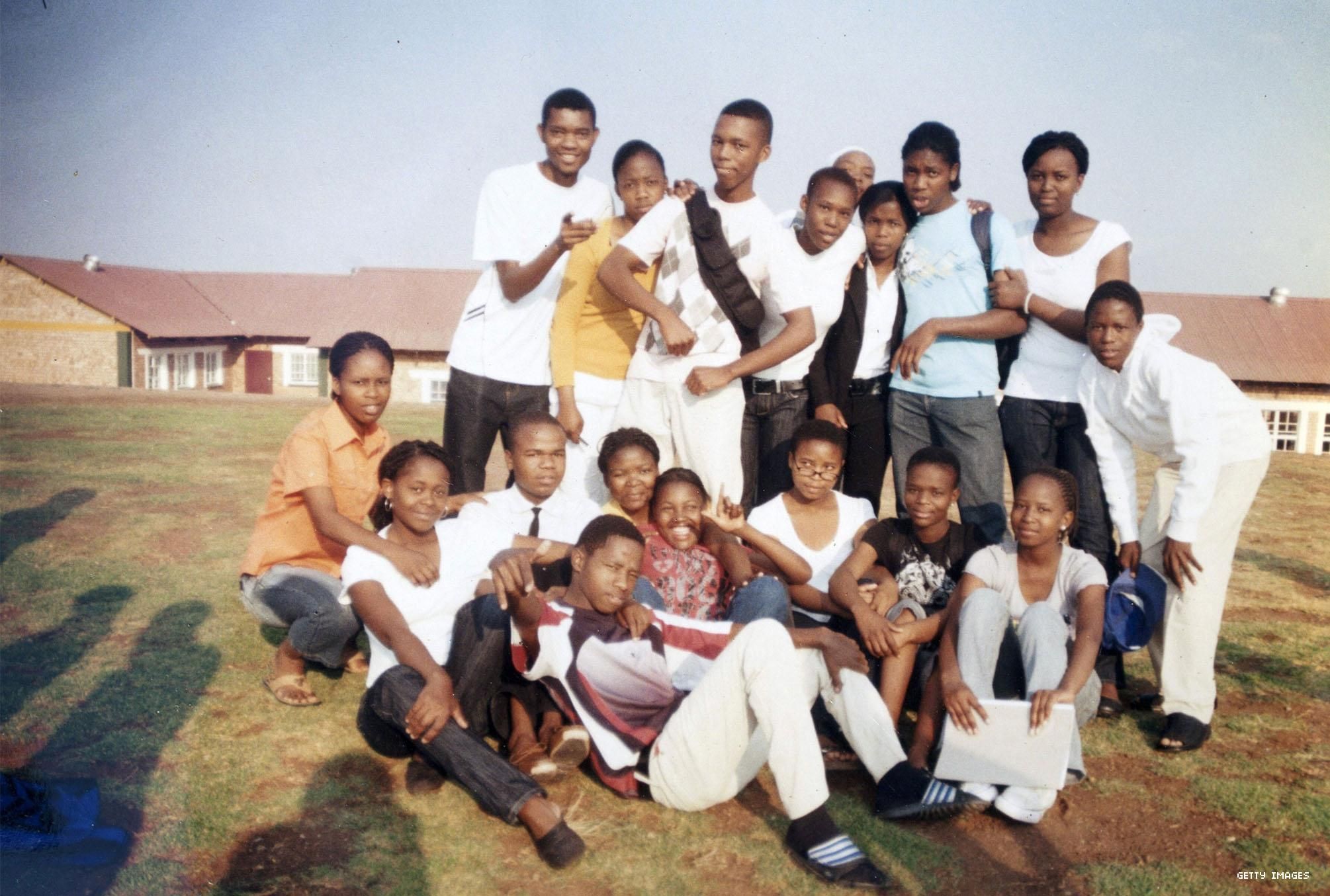 Semenya among classmates in high school in Ga-Masehlong, South Africa. (Photo by Per-Anders Pettersson/Getty Images).