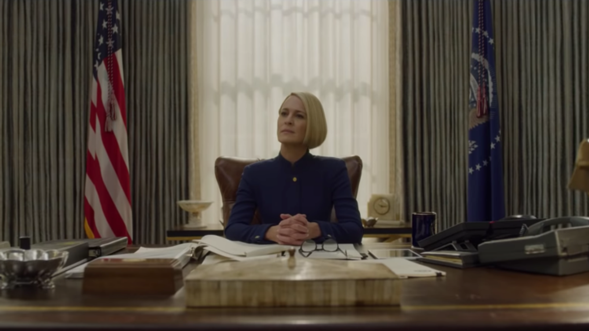 We knew that everything would be different going into House of Cards' final season: Kevin Spacey is out and Francis Underwood is dead, and now his widow Claire (Robin Wright) is president. "The reign of the middle-aged white man is over," says the new President Underwood, kicking off her first 100 days in office with some scalding hot tea. And she doesn't stop there, throwing some heavy shade Francis' (and by extension Spacey's) way, looking directly at the camera: " "Here's the thing: Whatever Francis told you the last five years, don't believe a word of it." Watch the trailer below.