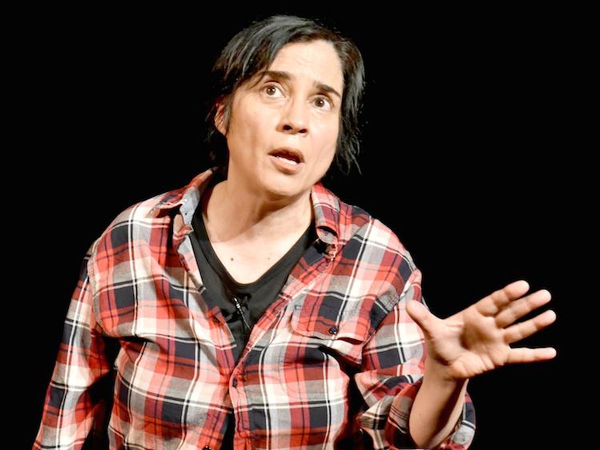 Marga Gomez wants you to know one thing: the constant reiteration of the lesbian as a depressed and/or angry woman is utter bullshit. In fact, she makes it pretty clear that almost all of pop culture's representations of lesbians are bullshit. Within minutes of taking the stage in Pound, her one-woman show at Dixon Place's Hot! Festival, she calls to mind her possibly lesbian character in 1997's Sphere (yup, she was the actress that shared three lines with Queen Latifah) who dies in the first 30 minutes of the film, Netflix's happy lesbians in prison, and the inept lesbian extortionist played by Dame Judi Dench in Notes on a Scandal.