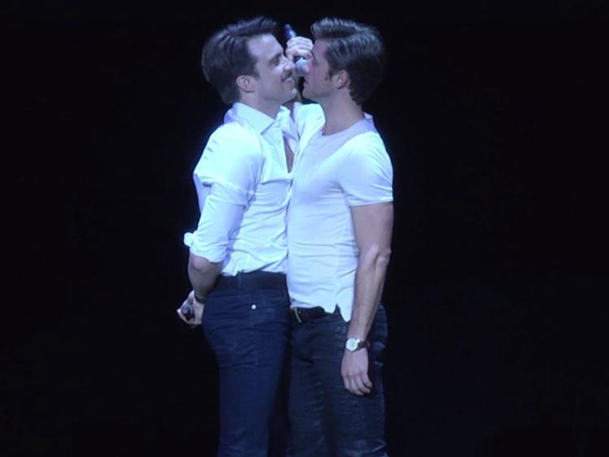 During the MCC Theater's Miscast benefit on April 4 at the Lucile Lortel Theater in New York City, Broadway stars Gavin Creel and Aaron Tveit took on the parts of Maureen and Joanne in a performance of "Take Me or Leave Me" from Rent.
