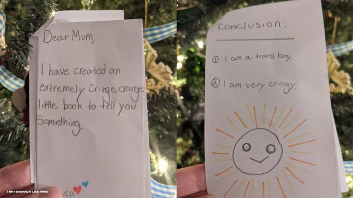 A transgender 13-year-old boy found the most creative and heartwarming way to come out to his family this Christmas. Author Amanda Mancino-Williams revealed on Twitter that her son decided he would pen a little book explaining he was a transgender boy, and slip it under her door. And let's just say there's more than one talented writer in this family.