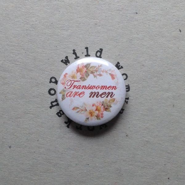 Many of the items the store sells include pins with anti-trans messages, including one that says "Transwomen are men."