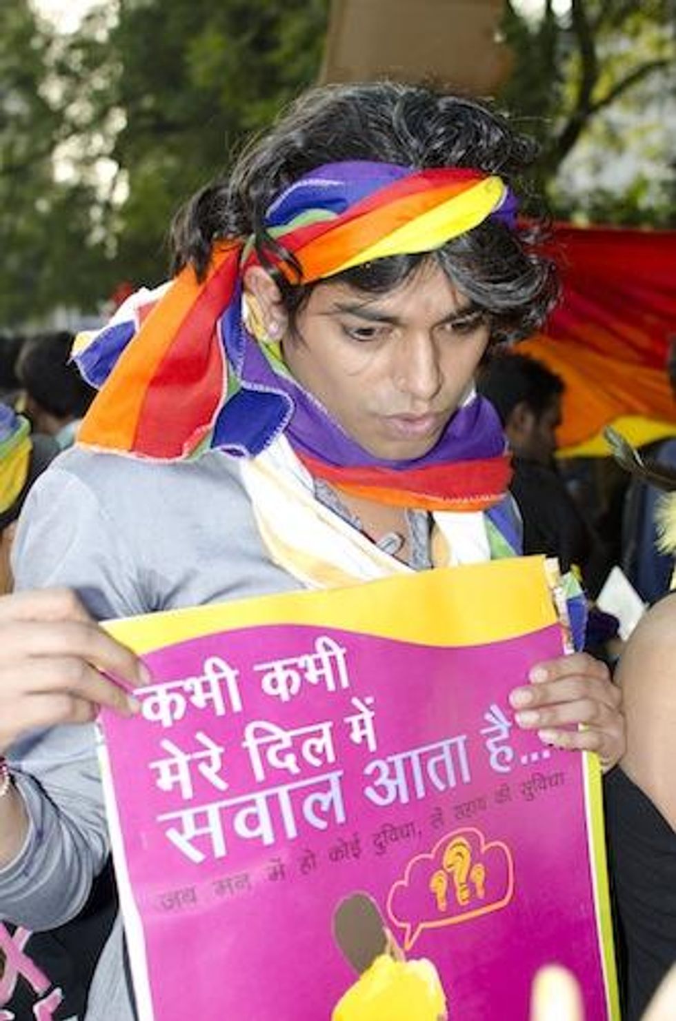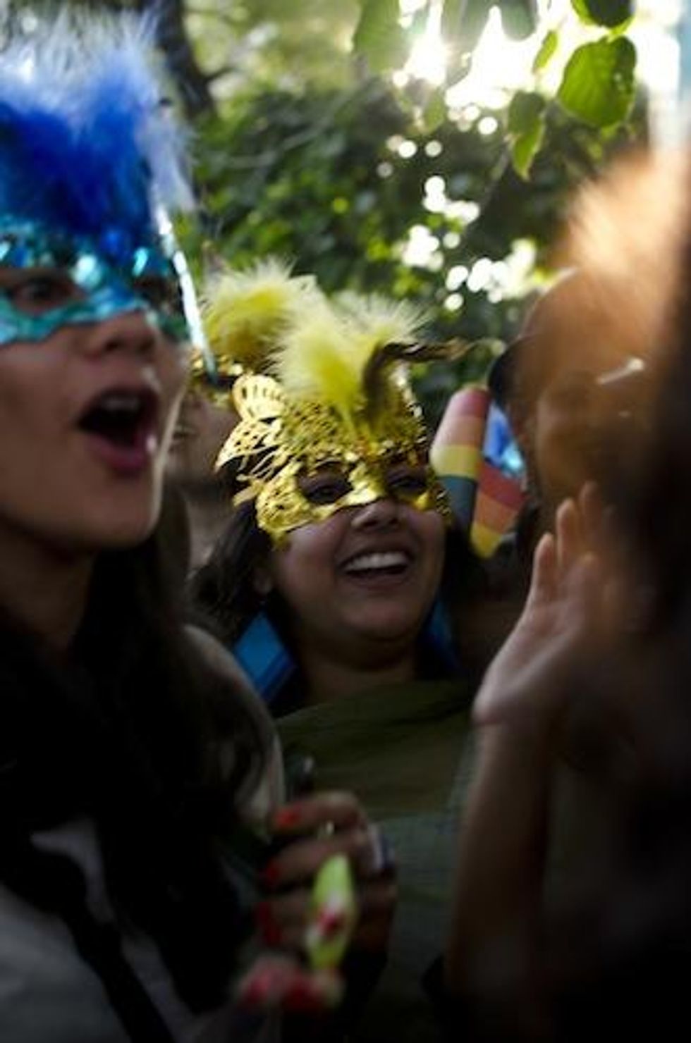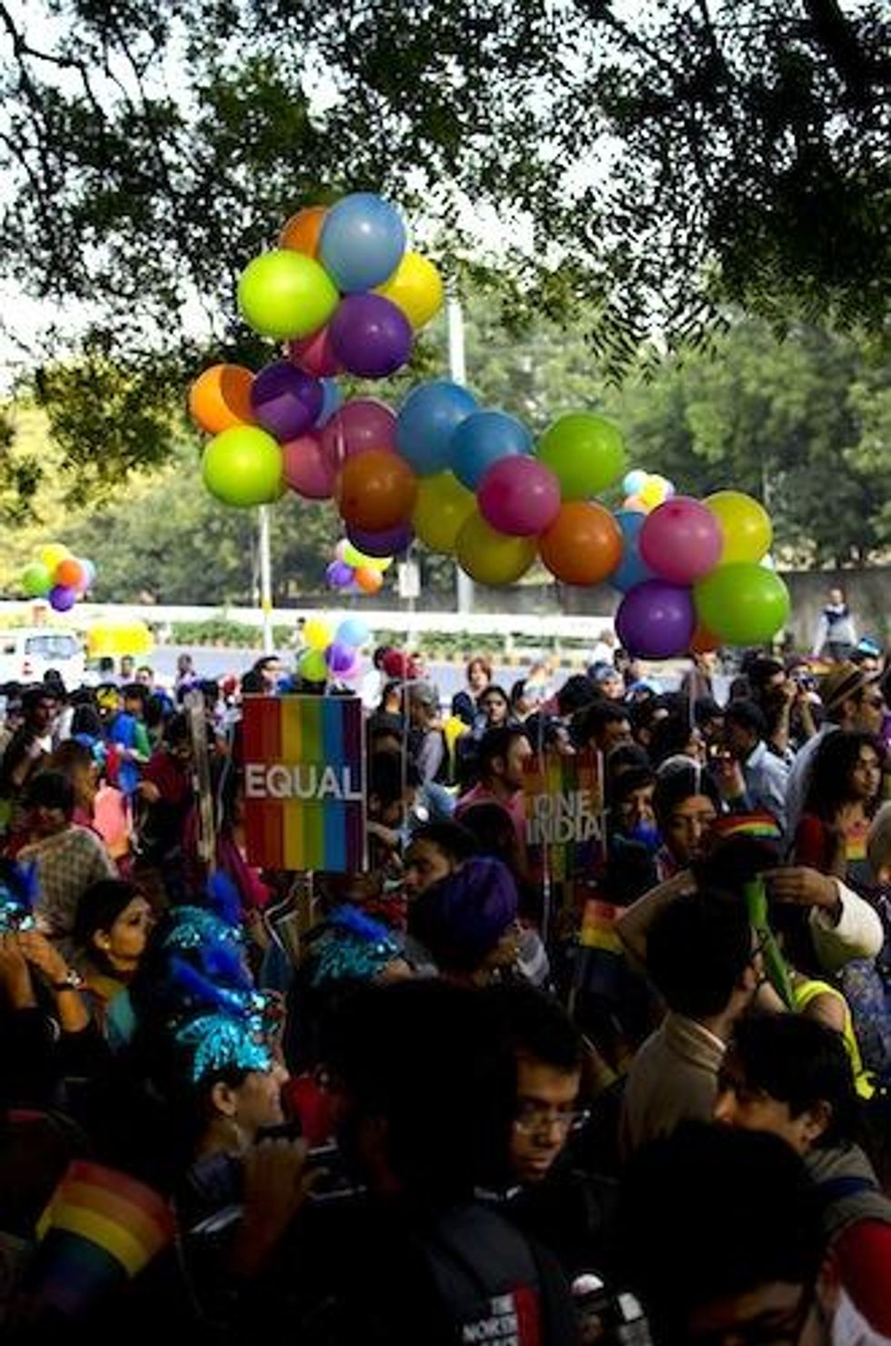 Approximately 300 people celebrated in the streets during the recent Delhi Queer Pride that took place in Connaught Place on Nov. 24, 2013. "A great deal of people are not able to express their sexual identity openly and have to hide it," photographer Sergiy Barchuk, who captured these images, explains. "There were signs that read 'PROUD PARENT' and 'I Want My Best Friend to be Able to Have a Husband.' It was particularly hard to see couples that had to wear masks, knowing that their relationships had to also be obscured in their day-to-day lives. Despite all that, the parade was an incredibly joyous occasion, with a friendly feel, with people expressing their desire to be able to openly live and celebrate love. "