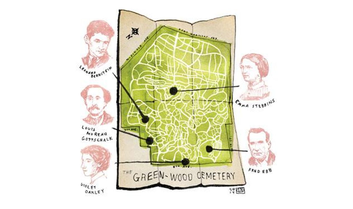 "Leonard Bernstein is just up the hill," Desiere says, indicating Battle Hill, the most prestigious area of Green-Wood and the site of the first military engagement of the Revolutionary War after the signing of the Declaration of Independence.