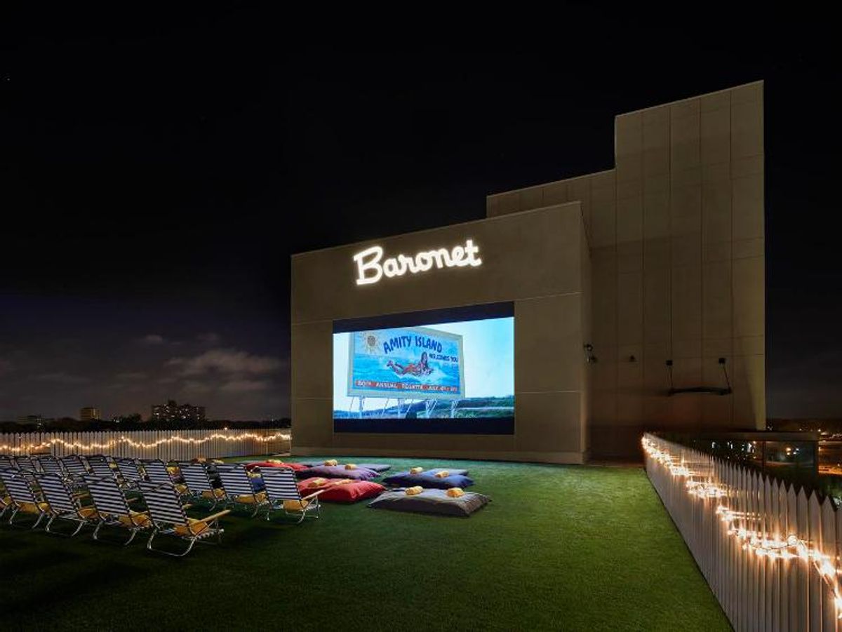 Salvation, the aptly named bar on the top of the property, has been drawing an eclectic crew of clubbers mirroring the different stripes of beachgoers since the hotel's soft opening over Memorial Day Weekend. And Baronet, the astroturfed roof deck on the fifth floor, screens movies regularly (think: Top Gun and The Adventures of Priscilla, Queen of the Desert) for guests and locals alike.