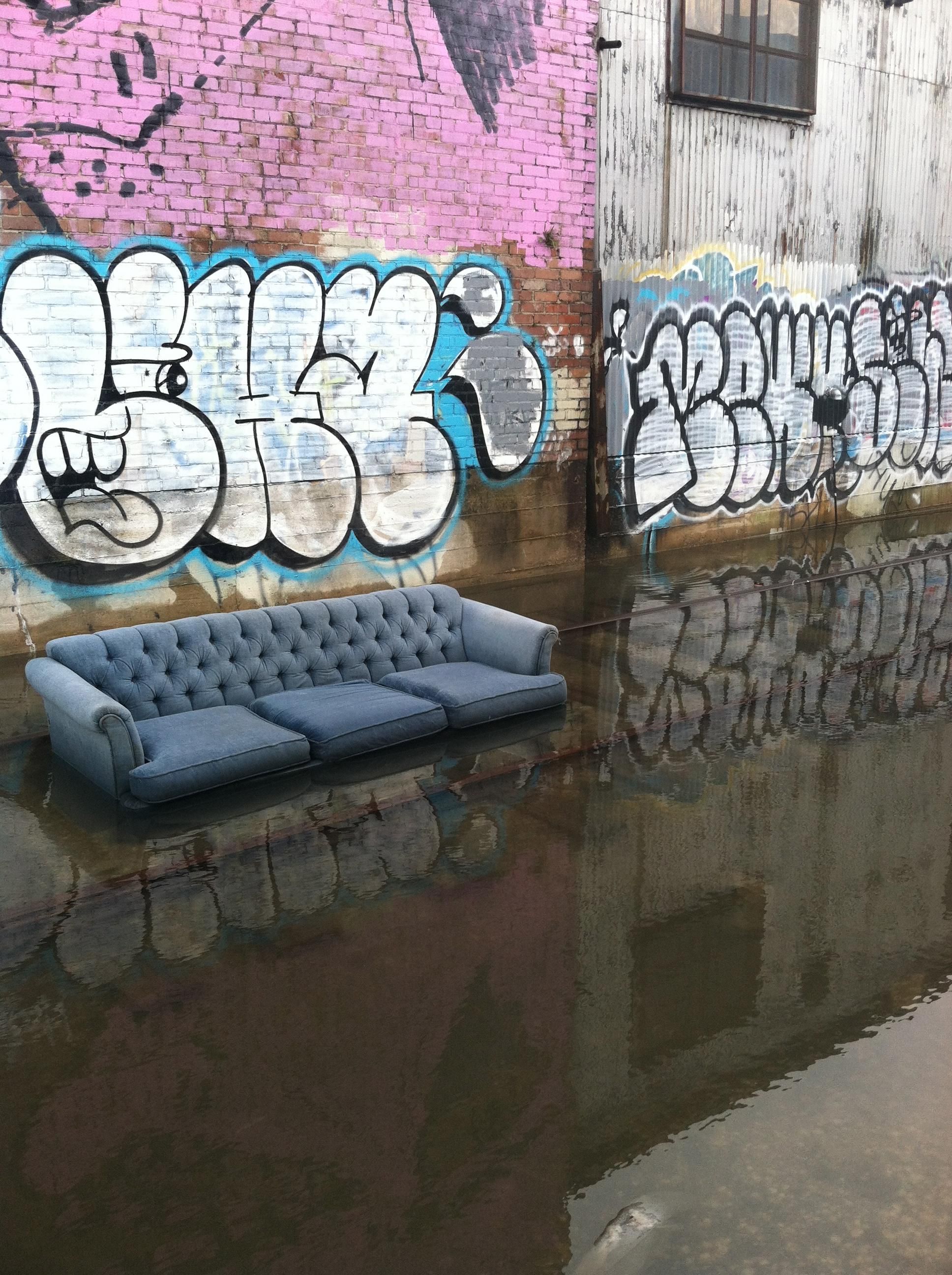 Artist Lauren Marie's contribution featured a skeleton sitting in an unused toilet, mocking the goer and, during my visit, Project Runway contestant Mat Arthur installed a piece titled "Darwin and the Survival of the (out)fittest" that showed early man leaning to walk in heels. Local musician Big Freedia also put together an installation called Beaucoup Booties that featured airbrushed images of big booties and short shorts. "Art is vital to all communities and as a writer and filmmaker myself," Vivion says of the By Waterloo project. "I believe that supporting the arts leads to a thriving, united community."