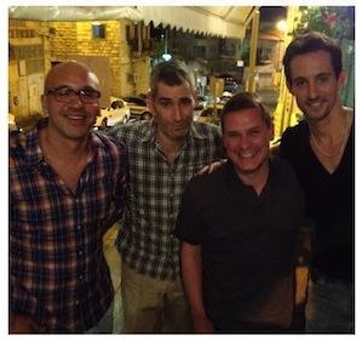 While we were in Jerusalem, I was able to join Out Editor in Chief Aaron Hicklin for a meal with Gal Uchovsky--who is a prominent personality, talented writer (and former judge on Israeli Idol)--and pop sensation Ivri Lider. After dining with the full group of editors at Chakra, a fine restaurant in its own right, we skipped dessert to go hunting for Machneyuda, the restaurant with the same name as the famed Jerusalem open-air food market. After wandering a few streets, we found the restaurant and embarked on an impressive chef's tasting menu that included a sensational creamy polenta served in a mason jar with a softboiled egg, a variety of wild mushrooms, goose liver, and truffle oil. It got a little rambunctious later, when the kitchen staff--including the chef--started pounding on pots and pans and drumming to the beat of a traditional Israeli tune.