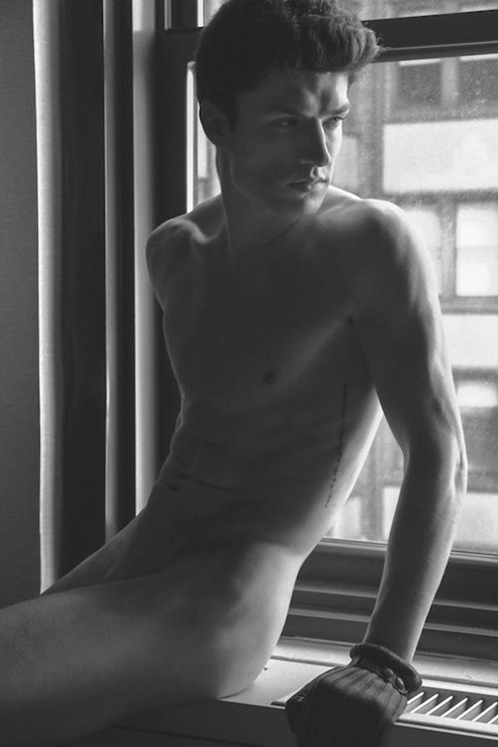 Photographer Balthier Corfi captures model Jacob Evaristi in a chilled, nostalgic mood at the Westhouse Hotel, in New York City. The series of understated images focuses on Jacob's striking face and perfect physique.