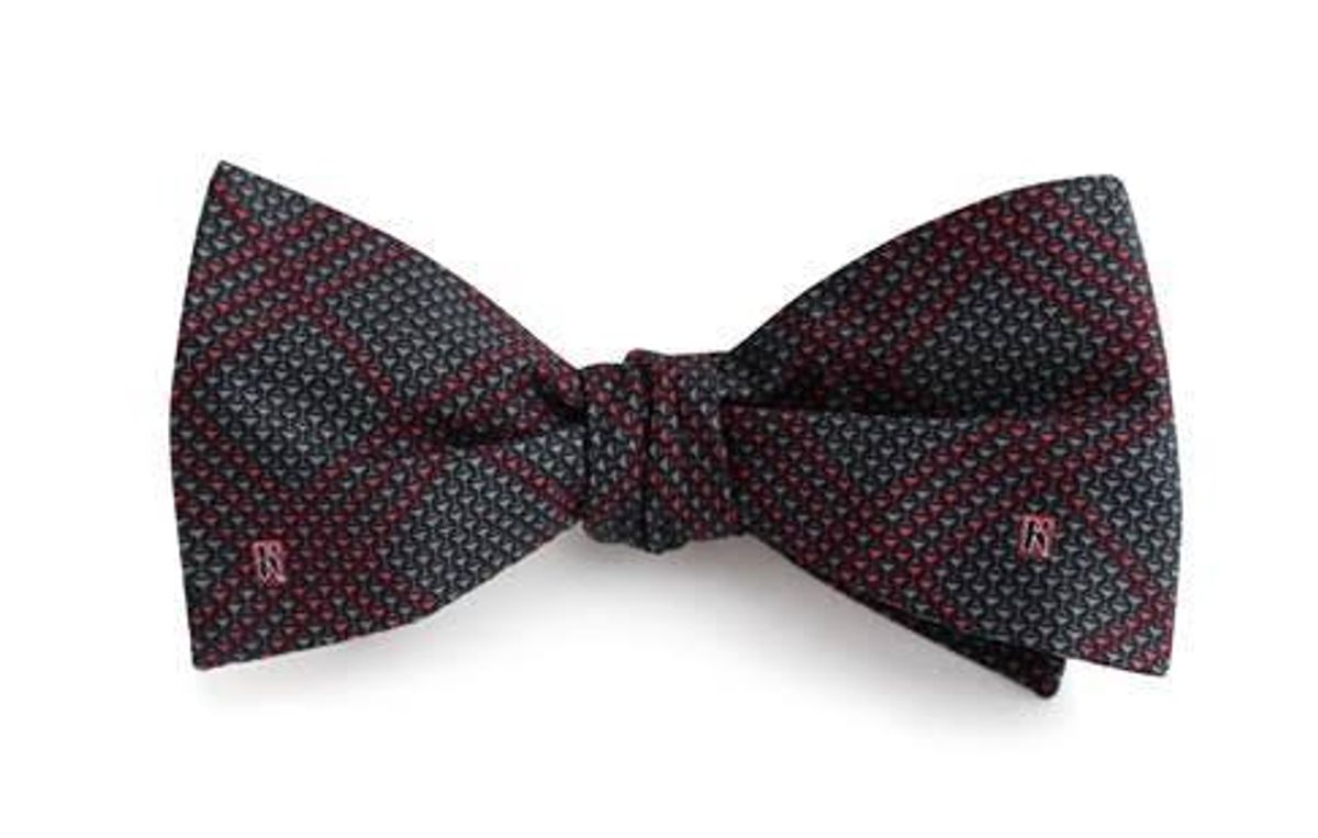 The Martini bow tie is made from 100% woven silk and features a smart plaid print of red and grey martini glasses. Limited at a run of about only 200, the bow ties are available from June 25th.