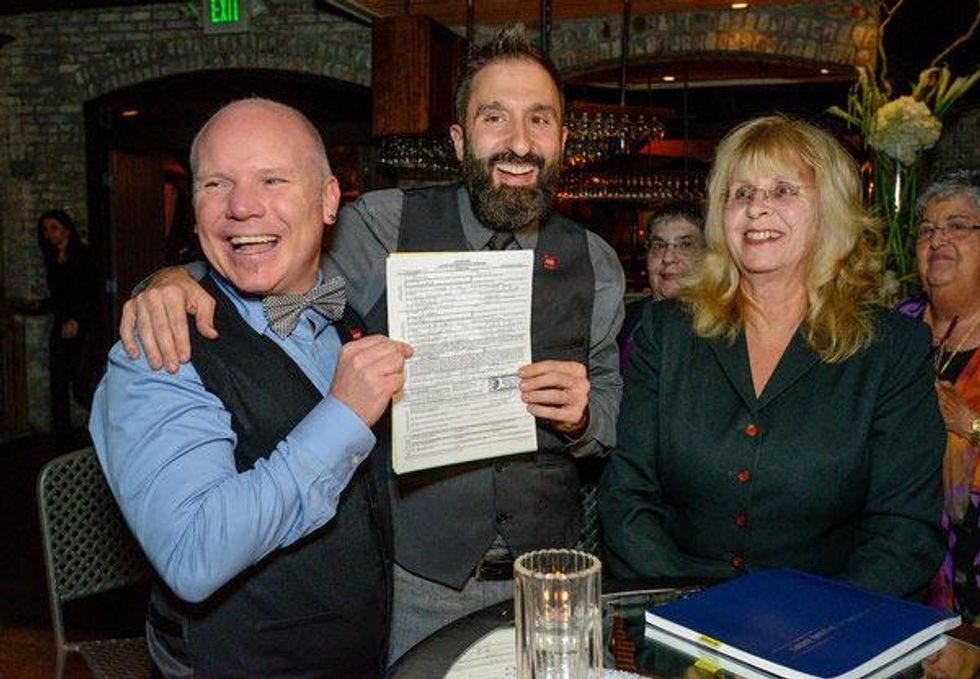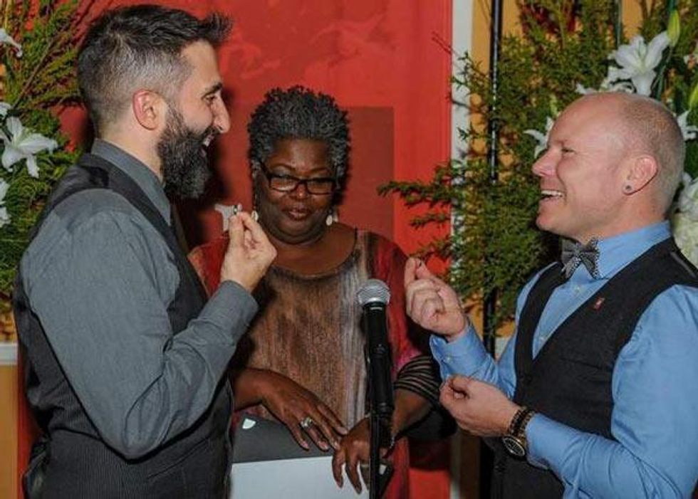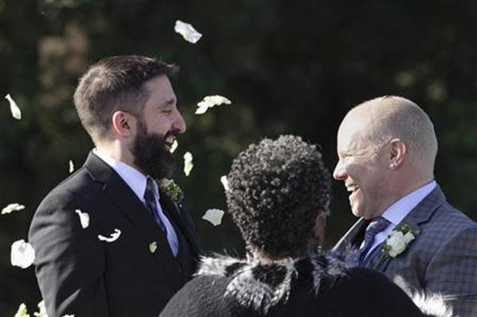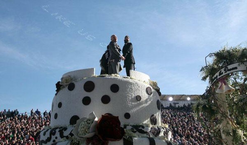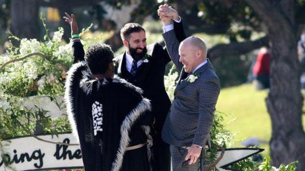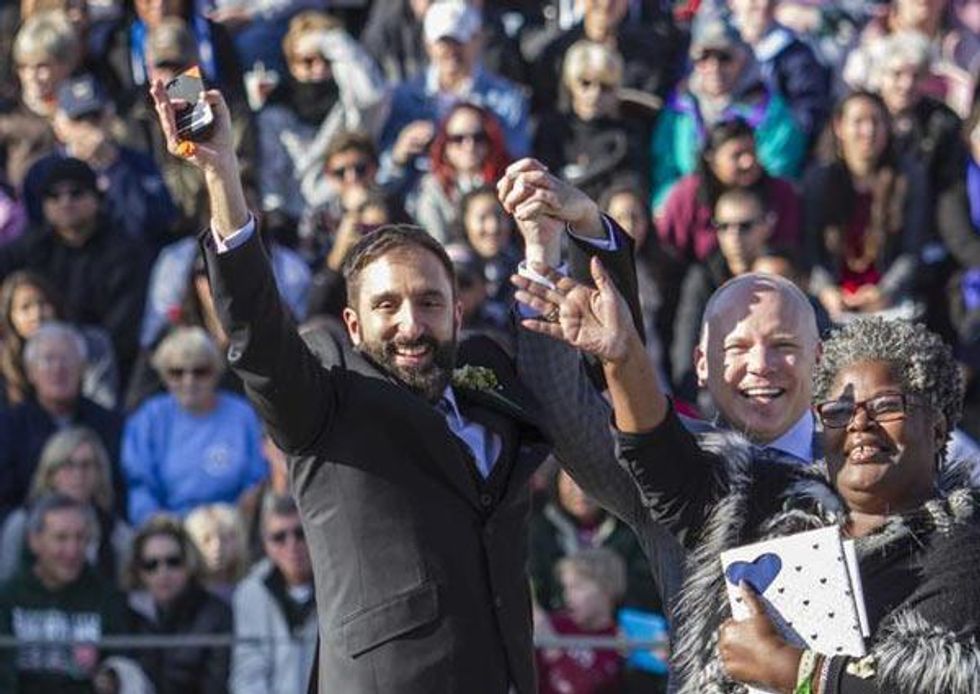 Danny Leclear (bearded) and Aubrey Loots were married during the 125th annual Rose Parade on Jan. 1, 2014