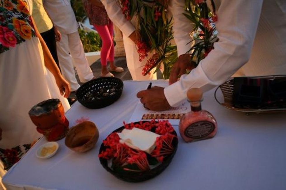 A couple had their vows performed in a traditional ceremony at Oasis Sens, a Cancun resort