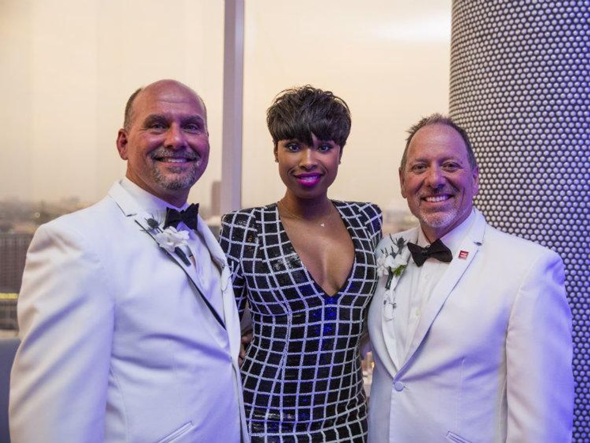 After exchanging vows at the Altitude Club atop the W Hotel in Dallas, Chris and Scott Lindsey were treated to a congratulatory video message from Hudson. After the message played, the Academy Award-winning singer, who partnered with W and the Human Rights Campaign for their "Turn It Up For Change" collaboration, stepped out from behind a curtain flanked by backup dancers to perform her equality anthem, "I Still Love You."