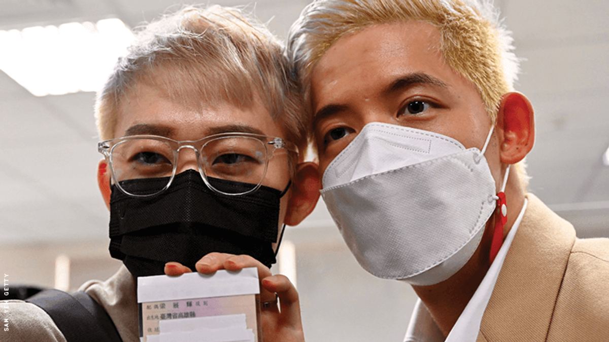 Taiwan has recognized marriage equality since a 2017 court decision and a further 2019 legislative act, but only when one of the partners is from a country that does not matrimonially discriminate against same-sex unions. Ting is from Taiwan, while Leong is from Macau, which does not recognize marriage equality. The pair challenged that restriction and won in May, allowing them to officially record their marriage on Friday.