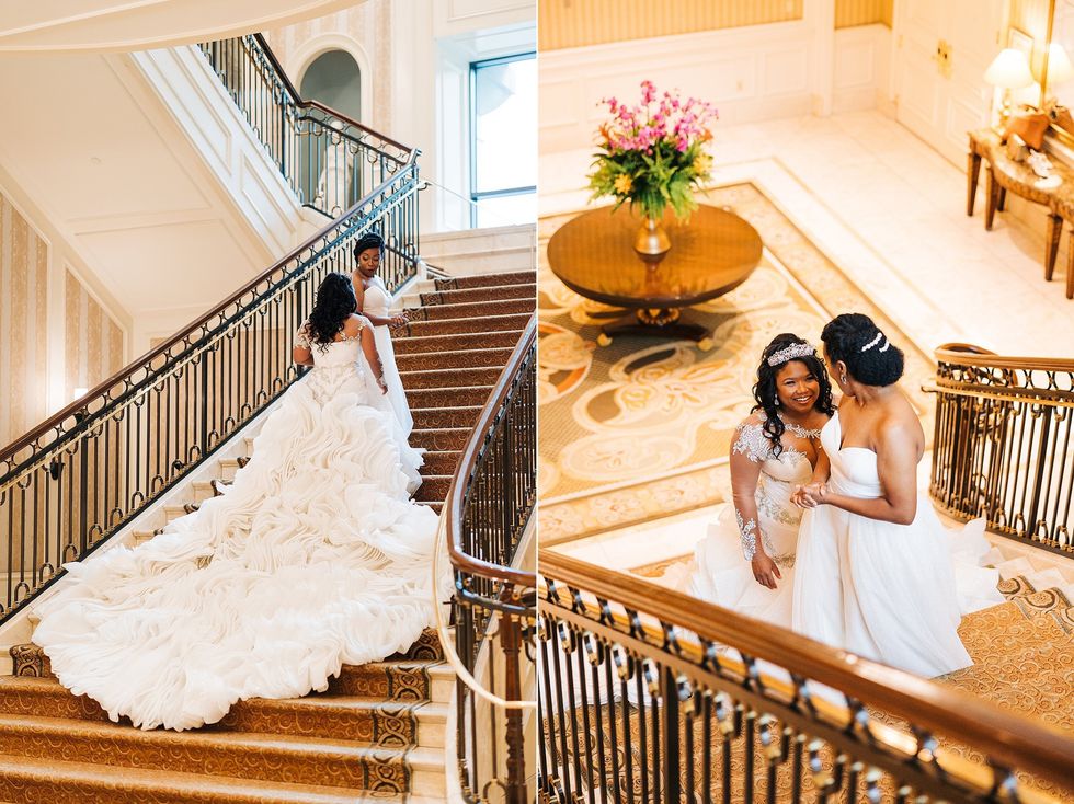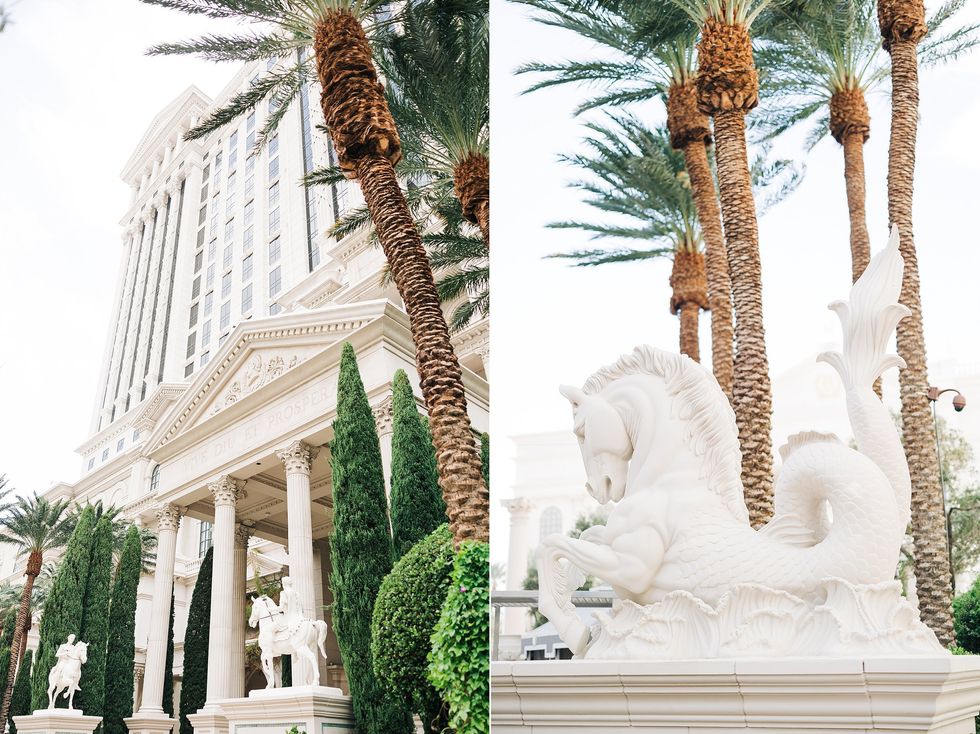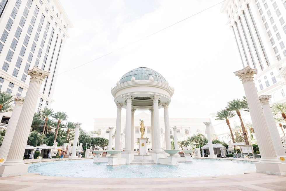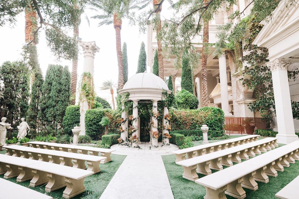 Once they had settled on the perfect destination, they flew to Las Vegas for a whirlwind tour of the spectacular hotels. The couple explored various venues, including Wynn Las Vegas, which boasts exquisite salons and a private courtyard adorned with ivy. They also considered Aria, offering the option of a poolside wedding for a tropical ambiance or a ceremony in the Villosa chapel, featuring a ceiling adorned with stunning chandeliers. However, both Stephanie and Rosalyn were won over by Caesars Palace. Stephanie fell in love with the Roman-inspired architecture, while Rosalyn, initially drawn to Bellagio for its fountains that could be synchronized with wedding music, was eventually won over by Venus Garden at Caesars Palace. Surrounded by trees, the garden feels intimate despite being in the heart of the Las Vegas Strip. "Out of the places in Vegas, it was the best one [for us]," she says.