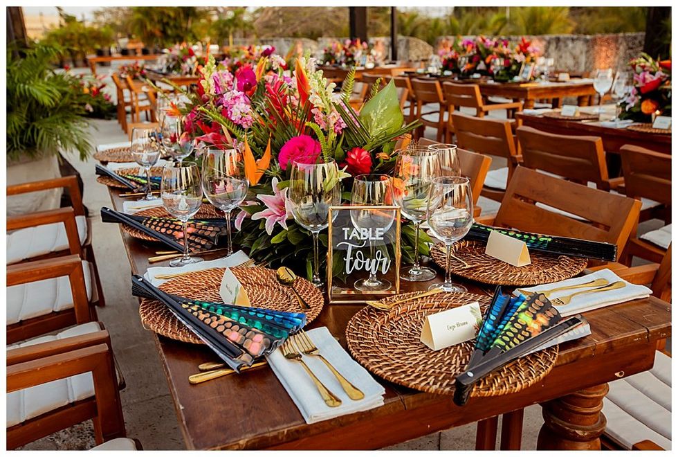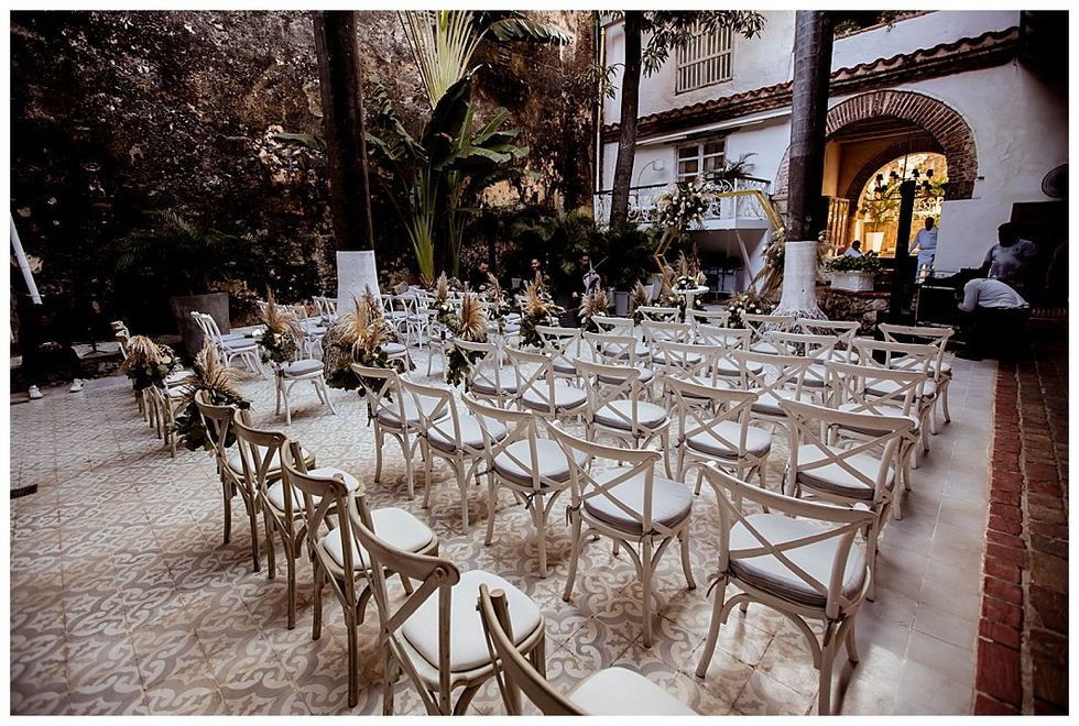 The theme incorporated tropical elements, with an abundance of greenery and colorful tropical flowers accentuating the already lush surroundings. The couple chose sunset colors for their decor, reflecting the warm, vibrant hues of Cartagena’s architecture and street art.