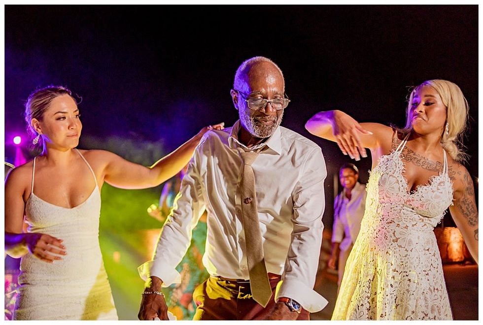 The couple’s favorite moment was their first dance medley, a mix of Nicki Minaj’s “FTCU,” Muni Long’s “Made For Me,” and Lauryn Hill’s “Nothing Even Matters.” Nicki’s father, who had recently recovered from surgery, made a special appearance. “He was so excited and happy for us, he stood right next to us on the dance floor … photo bombing all of our solo dance pictures,” laughs Nicki.