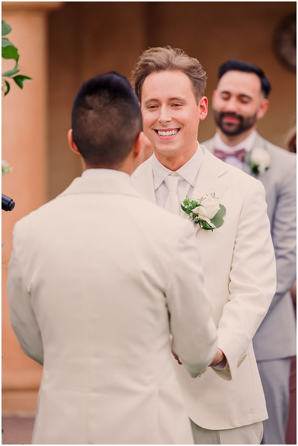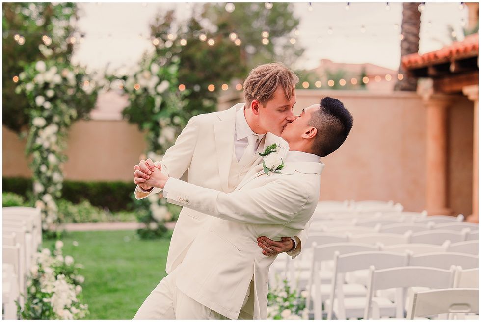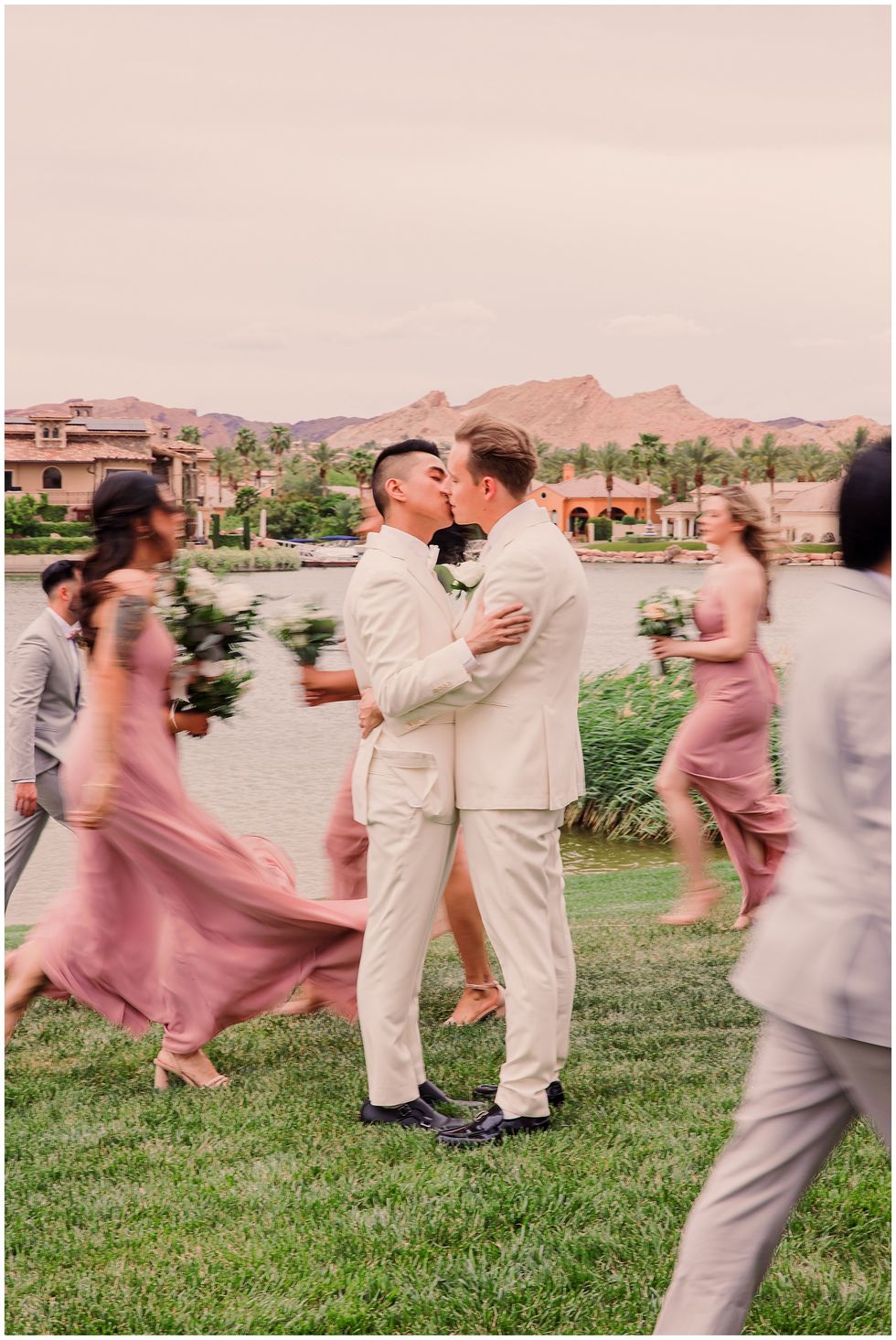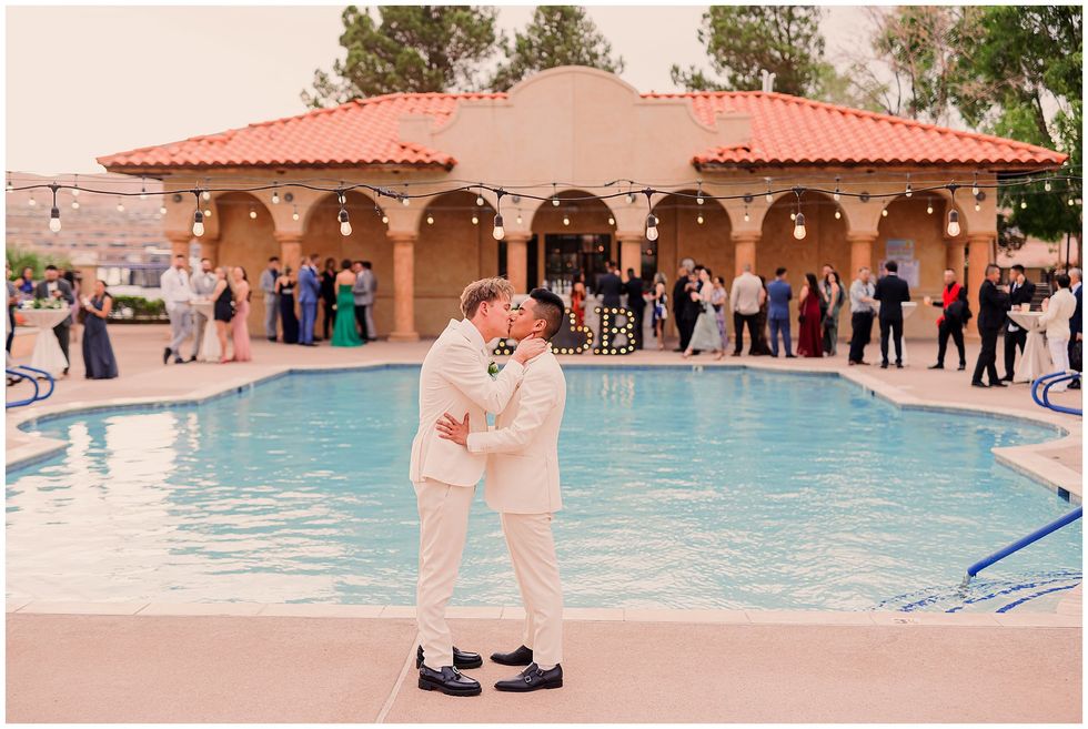 Antonio and Bryce’s journey began on Tumblr nearly a decade ago. Eight years later, Antonio proposed on the beach in Waikiki, Hawaii. After a smooth wedding planning process, they said “I do” at South Shore Country Club Lake Las Vegas with 125 friends and family cheering them on.